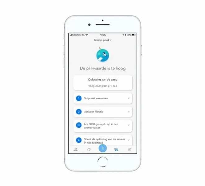 De Astral BlueConnect Plus Zout verbind je gratis met Sigfox. Dit is een wereldwijd WiFi netwerk speciaal gemaakt om apparaten makkelijk aan te sluiten op internet. Download vervolgens de BlueRiiot BlueConnect app en verbind de tester ermee. Vanaf nu bekijk je alle huidige waterwaarden vanuit je luie stoel! De app stuurt pushmeldingen wanneer bepaalde waarden niet meer goed zijn. Lees meteen af wat en hoeveel je toe moet voegen en je zwembadwater is in een mum van tijd weer op peil!