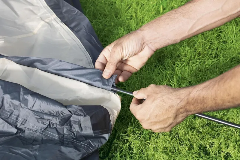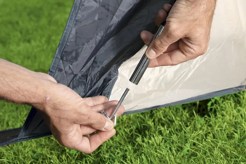De Lay Z Spa overkapping is binnen 15 minuten met 2 personen op te zetten. In de basis wordt de Lay Z Spa Dome hetzelfde opgezet als een tent. Hiervoor gebruik je de tentstokken, scheerlijnen en haringen. Alle toebehoren om de koepel op te zetten worden standaard meegeleverd in het pakket. Bovendien kun je de koepel ook heel makkelijk ergens mee naartoe nemen, want hij wordt geleverd met draagtas. De overkapping heeft 4 even lange zijden. Aan iedere zijde is het mogelijk de doeken weg te halen, zodat het lekker door kan waaien.