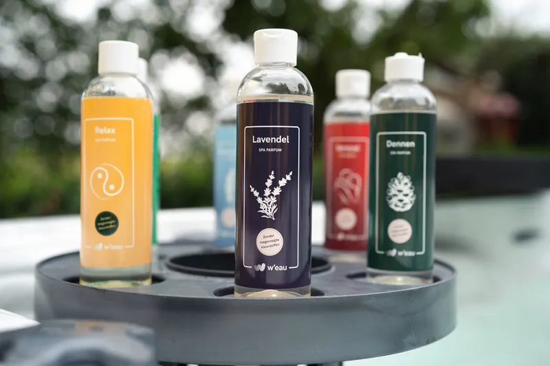 De W’eau geur lost volledig op in het water en schuimt niet. Ook is de geur – in tegenstelling tot vele andere geuren – niet ‘bevuild’ met kleurstof. Het product is niet vettig en zal het oppervlak en de techniek van je spa/bubbelbad niet vervuilen. Het betreft een aromatherapie op basis van essentiële oliën. Dit in combinatie met de intense watermassage die opname via de huid en inhalatie stimuleert, maakt de geur zeer effectief in de spa/bubbelbad.
