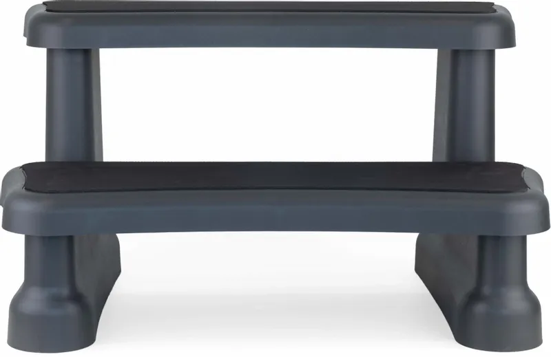 En dan bedoelen we ook echt makkelijk. Zet de 2 poten neer. Pak een traptrede. Klik hem eerst op de ene poot en daarna op de andere poot. Of doe beide tegelijk. Maar zorg dat je echt een klik hoort. Doe vervolgens hetzelfde met de tweede traptrede. Tadaa! Je spa trap is klaar om gebruikt te worden. Appeltje eitje dus.